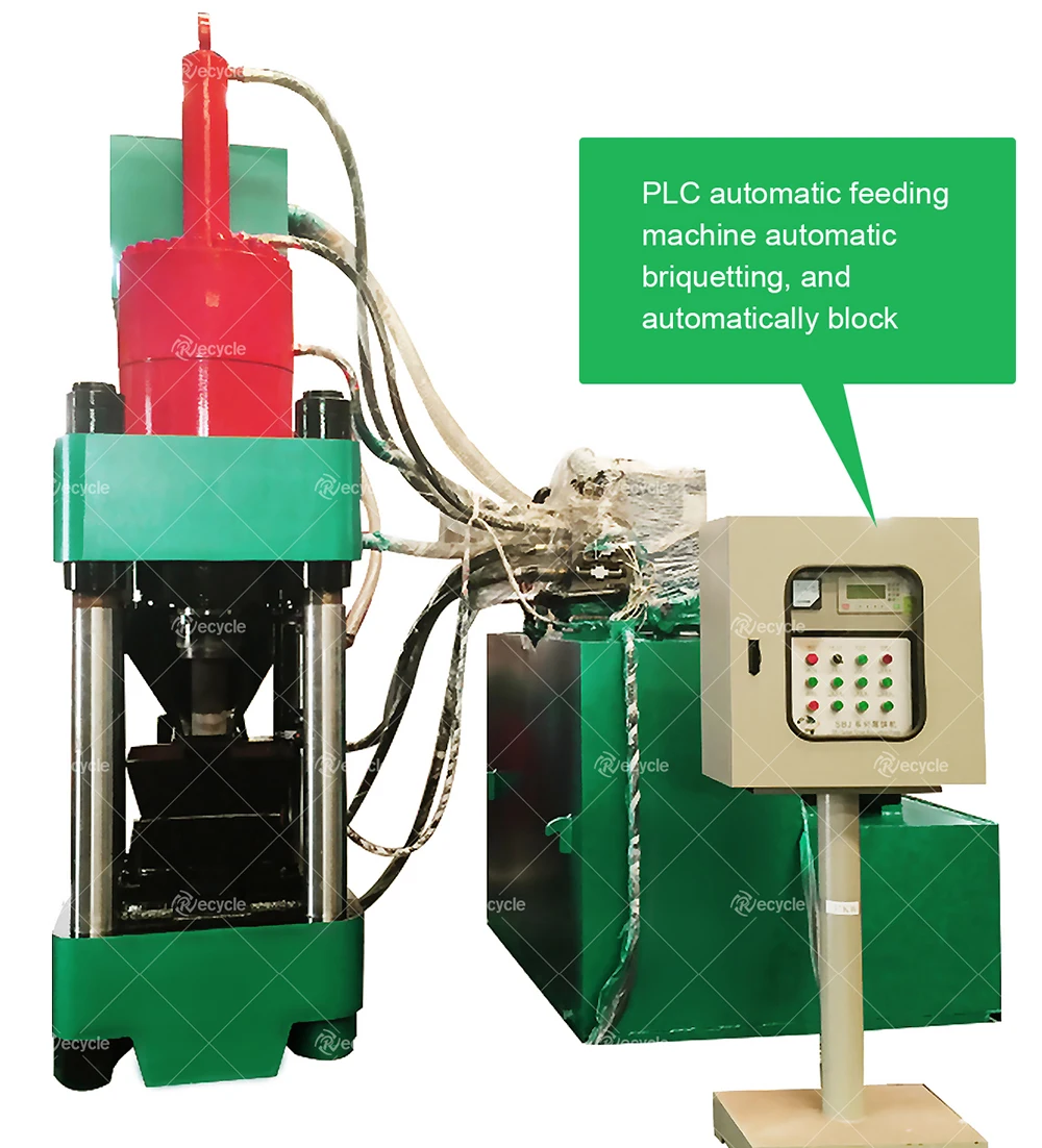 Aluminum Powder Compressing Machinery Metal Scrap Compactor is designed with quick speed cylinder and liquid rinsing valves, and the machine has auto charging unit which can be operated by