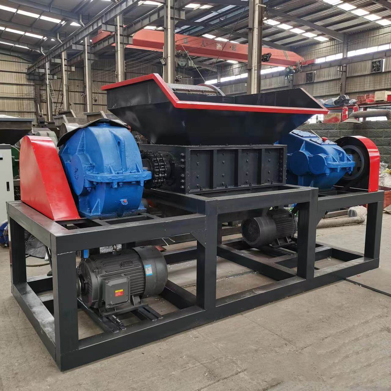 Twin-shaft shredder also named shearing machine, by cutting, tearing and extruting to reduce the materials' size, widely used in
