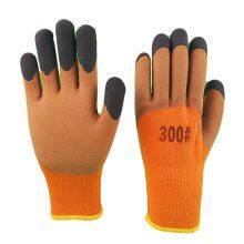 Terry Liner Thickened Polyester Thread 7 Gauge Knitted Wrinkled Latex Palm Coated Safety Work Gloves