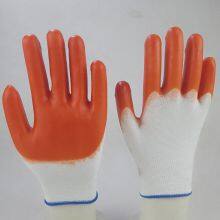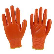 White Polyester Thread Knitted Orange PVC Palm and Fingers Coated Water-proof Abrasion-resistant Safety Work Gloves