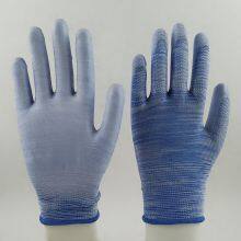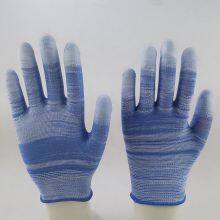 Blue and White Polyester Knitted PU Fingers Coated Safety Work Gloves Anti-dirt Breathable Comfortable Flexible