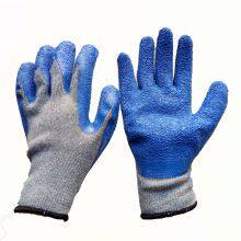 - Blue&white Polyester Thread 13 Gauge Knitted Deep Blue Foamed Wrinkled Latex Palm Coated Safety Work Gloves