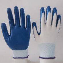 13 Gauge White Polyester Knitted Blue Nitrile Palm Coated Safety Work Gloves for Workers
