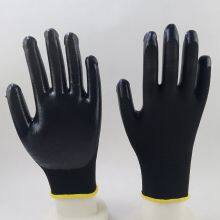 Black Polyester Knitted Black Nitrile Palm Coated Safety Work Gloves for Construction Workplace Workshop Plant Workers Wearing