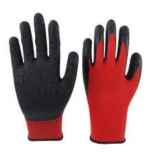 Red Polyester Knitted Wrinkled Latex Palm Coated Safety Work Gloves