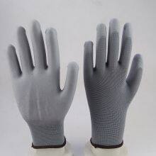 Gray Polyester Knitted Gray PU Palm Coated Safety Work Gloves Anti-static Comfortable Breathable