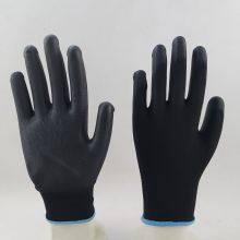 Black Polyester Knitted Black PU Palm Coated Safety Work Gloves Anti-static Comfortable Wearing Breathable