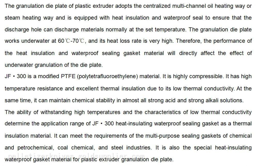 - Thermal Insulation Waterproof Sealing Gasket Used for Underwater Pelletizing System for PP PE Granules