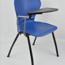 The chair surface and writing board are made of new PP engineering plastic one-time injection molding, and the chair steel frame is made of 15*30*1.0MM wall thickness oval tube, which is polished and polished, welded by carbon dioxide protection, and the steel pipe is baked and sprayed at high temperature after pickling and phosphating;
