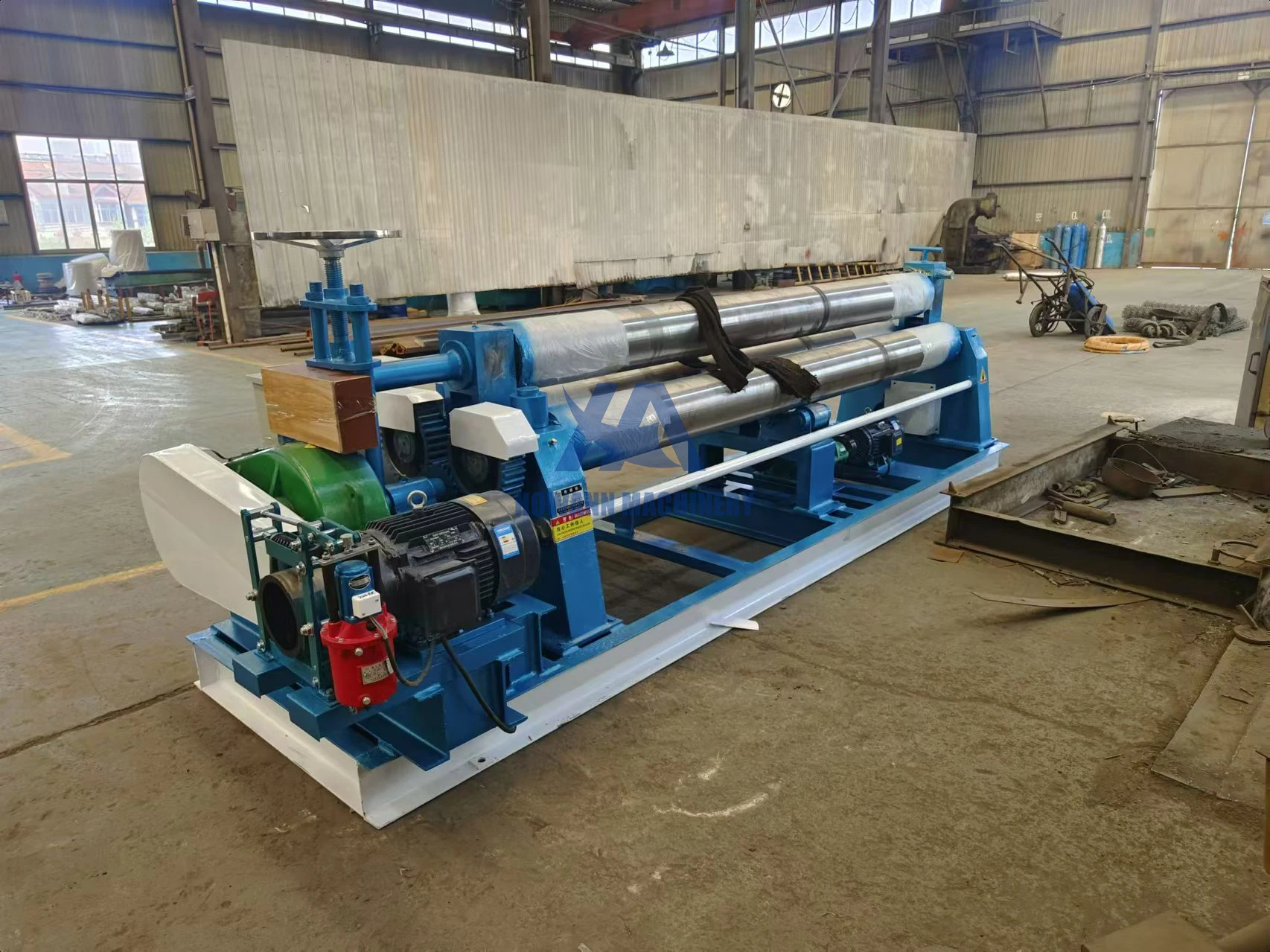 Manual/ Hand rolling machine, used for thin metal plate rolling; min rolling diameter 100 mm.It has Pre-bending function, make straight edges narrower, and it can even roll small round pipe with diameter of 100mm .with manual worm gear and eccentric wheel device so that the machine can quickly move side rollers up and down to improve