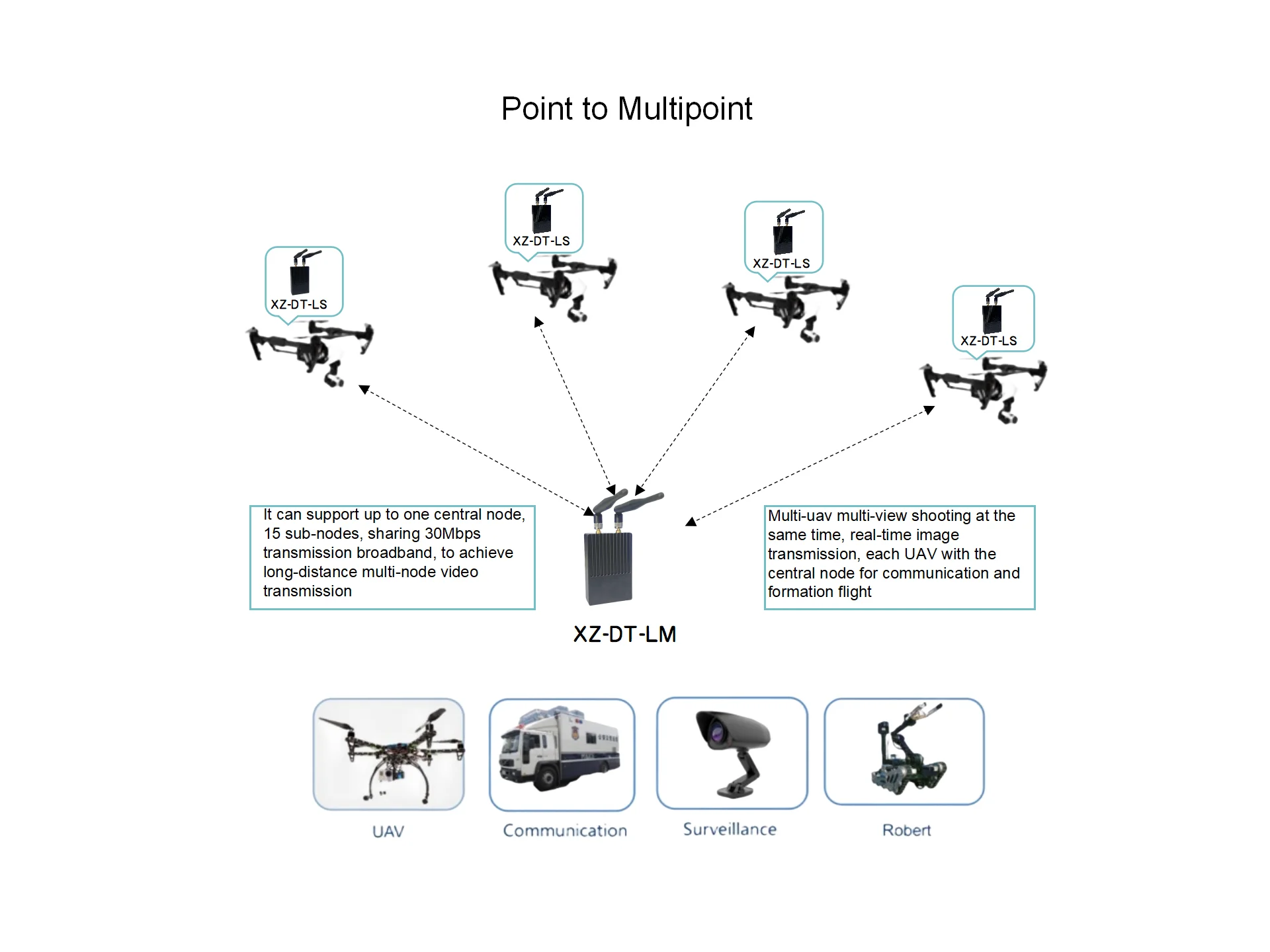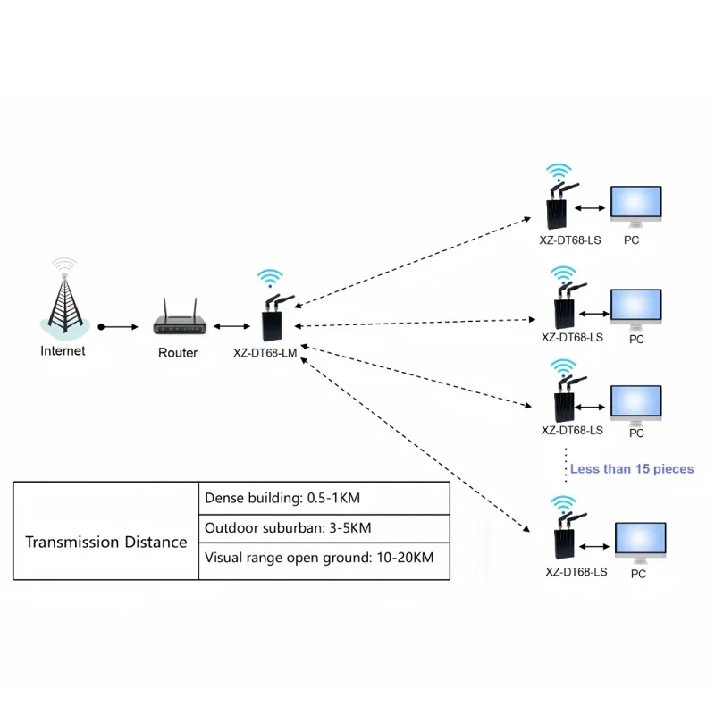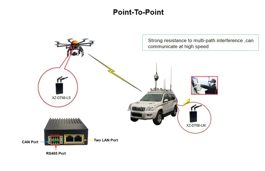 It enables non-line-of-sight (NLOS) wireless high-speed data transmission in real time.Supports PTP(point-to-point) and PTMP(point-to-multipoint) networking.Real-time transmission up to 30Mbps,wireless bandwidth and signal strength adaptive.