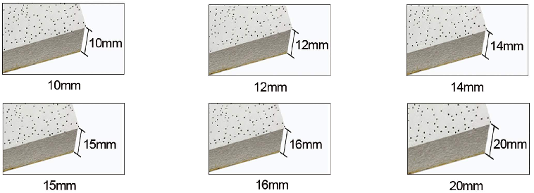 Now we are making mineral fiber ceiling tiles thickness from 6mm to 22mm .
