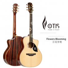 Wholesale China Factory OTIS 36" Flowers Blooming All Solid Acoustic Guitar (SITKA Spruce, African Mahogany) + Abalone Soundhole, Glossy, OEM ODM