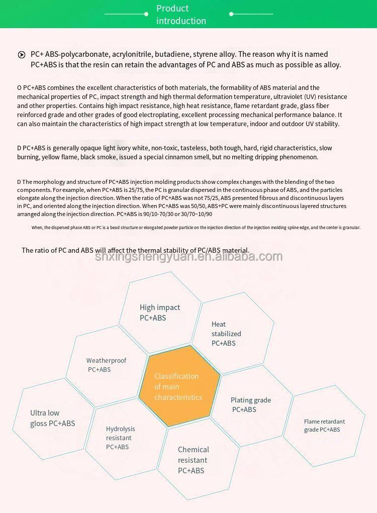 Manufacturers' PC/ABS Halogen-Free Flame Retardant V0 Modified Alloy Material Plastic Particles Resin Granules PC+ABS C2800US$ 2.46 - 3.2MOQ: 1 Kilogram