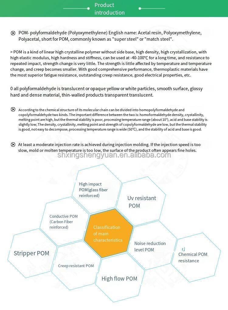 1. Highly crystalline resin with balanced mechanical, chemical, thermal and electrical properties 2. Excellent rigidity, creep
