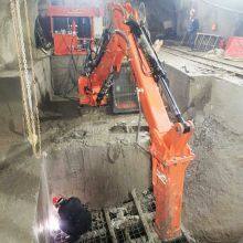 At the core of this system is a rigid pedestal foundation engineered to absorb repeated impact forces without loss of stability. The articulated boom extends into areas that are otherwise difficult to access, giving operators precise control when breaking boulders lodged at the mouth of a crusher or on top of a grizzly. This design ensures smooth, accurate motion across its working envelope, enabling continuous operation in harsh and high-capacity environments.