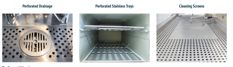 Medical: The medical industry relies on perforated metal for components such as perforated trays, biomedical glove box diffusers, fume hoods, clean room diffusers and animal caging. offers metal perforation services and products that meet strict requirements where air flow is critical.