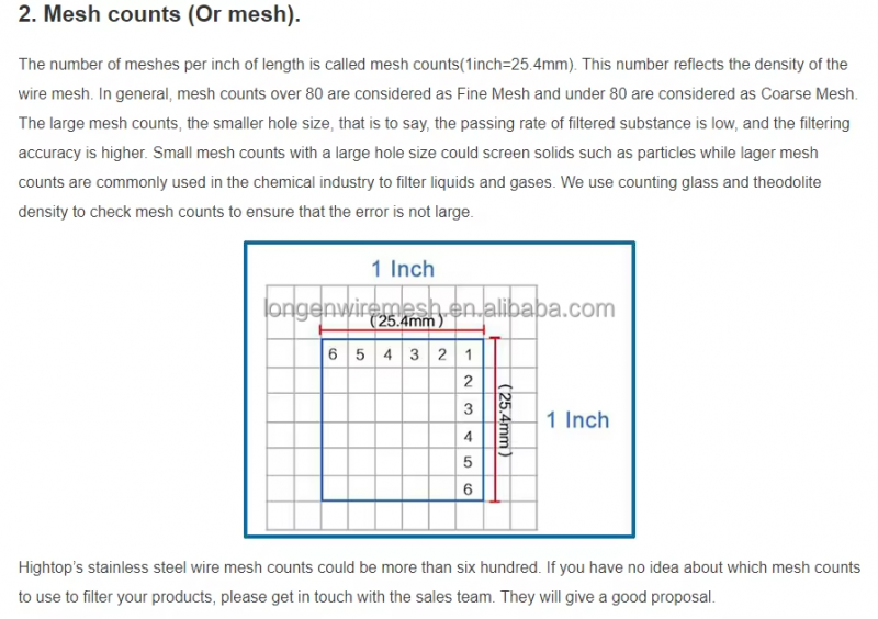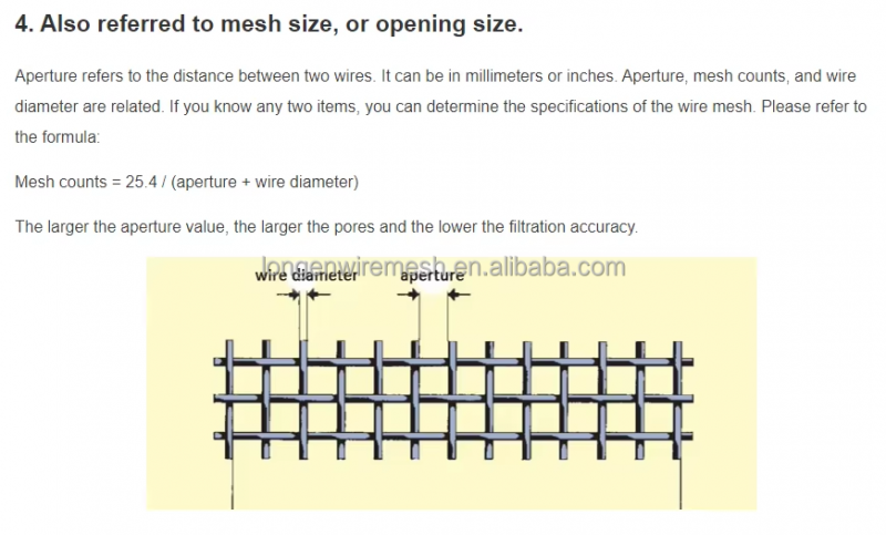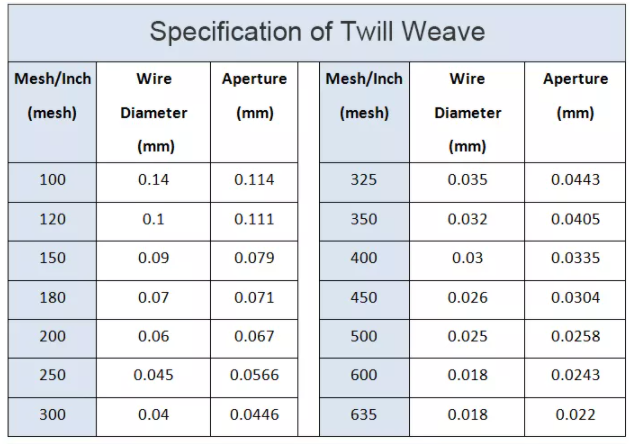 | Mesh/Inch(mesh) | Wire Diameter (mm) | Aperture (mm) | Mesh/Inch(mesh) | Wire Diameter (mm) | Aperture (mm) |