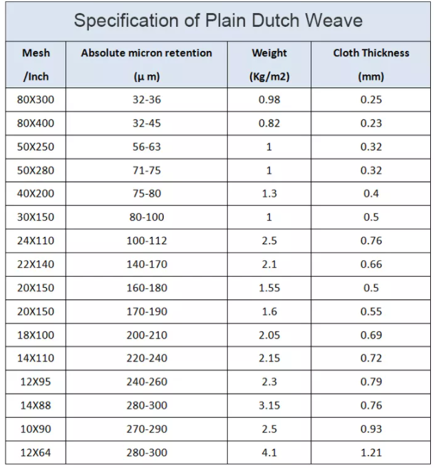 Plain Dutch Weave Stainless Steel Cloth Woven Mesh 20-500 Micron Liquid Filtration Custom Cutting & Welding Services Available