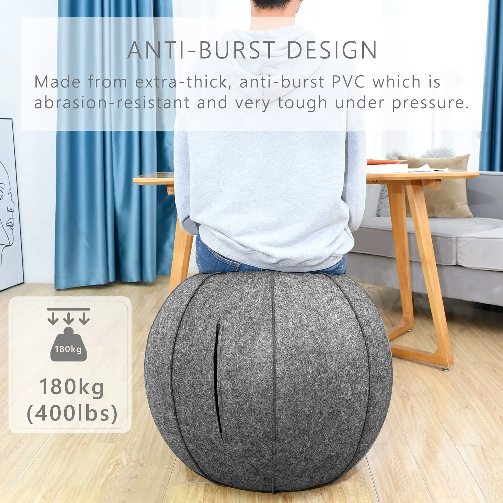 Exercise Ball Chair With Felt Cover & Handle for Yoga Comfortable Sitting Ball