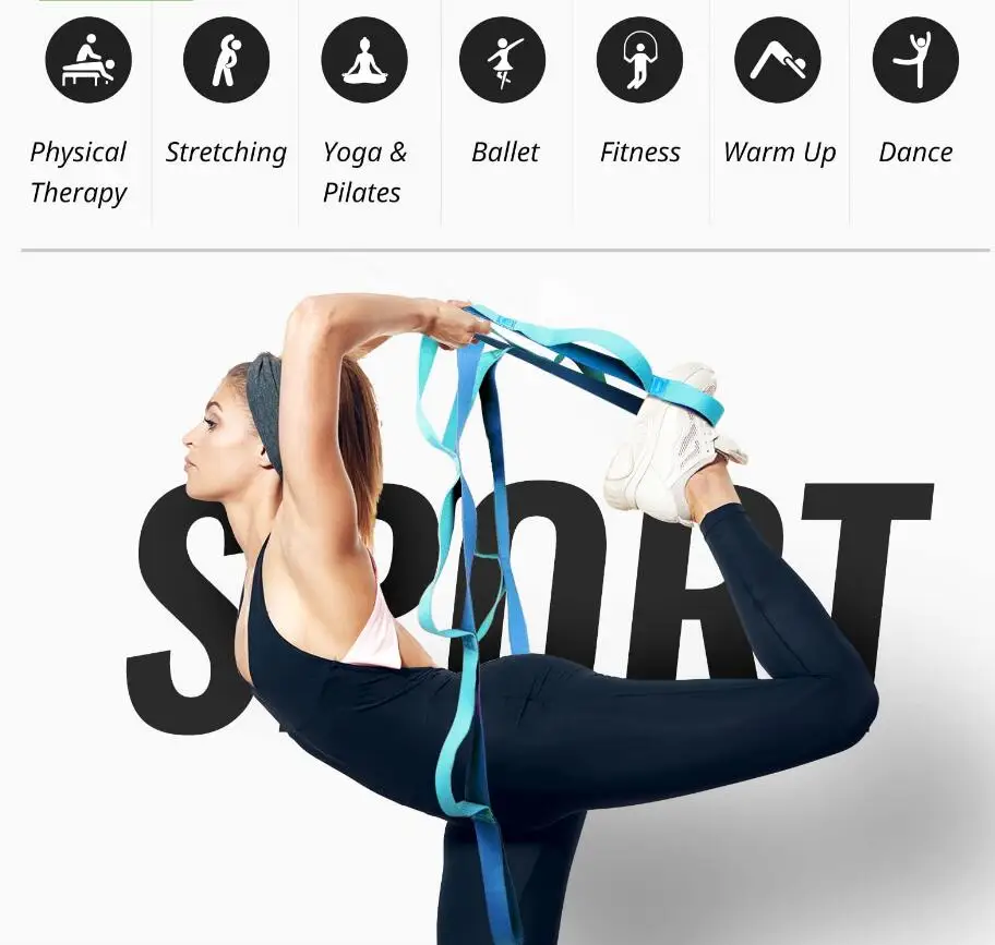 10/12 Loops Non-Elastic Stretch Strap for Yoga Rehabilitation Pilates Dance-Versatile Pilates Accessory