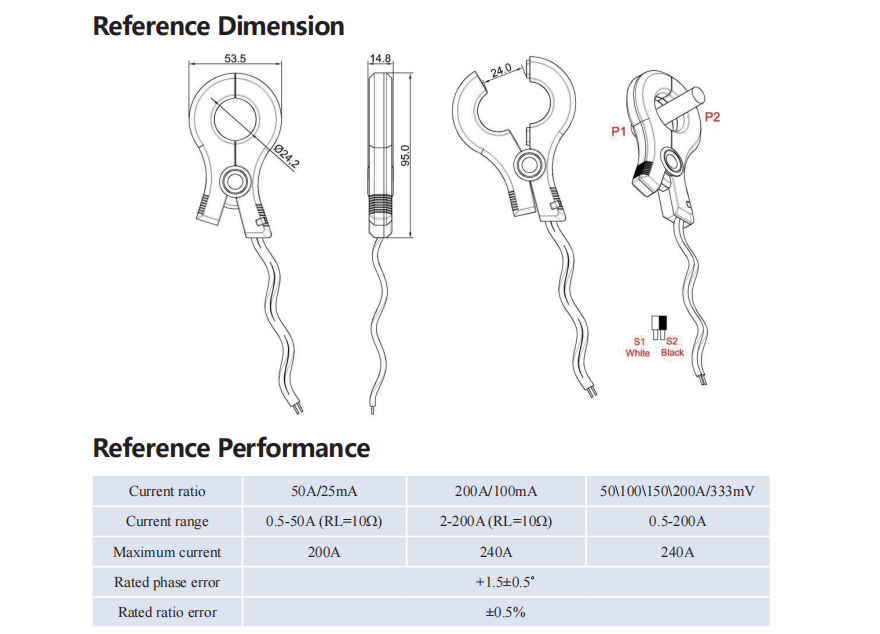 | Type | Split core, clamp design | ||