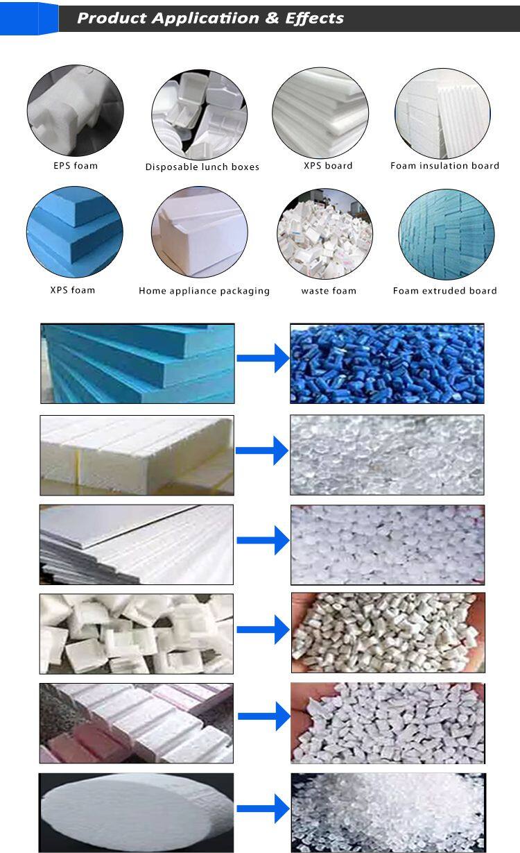 3. Multi-Application: Can process a variety of foam plastics, including EPS, XPS, EPE, and EPP, covering waste recycling in the packaging, building materials, and home appliance industries.