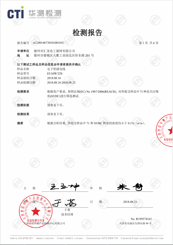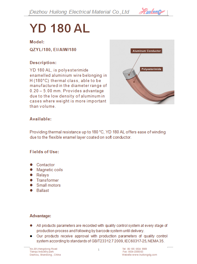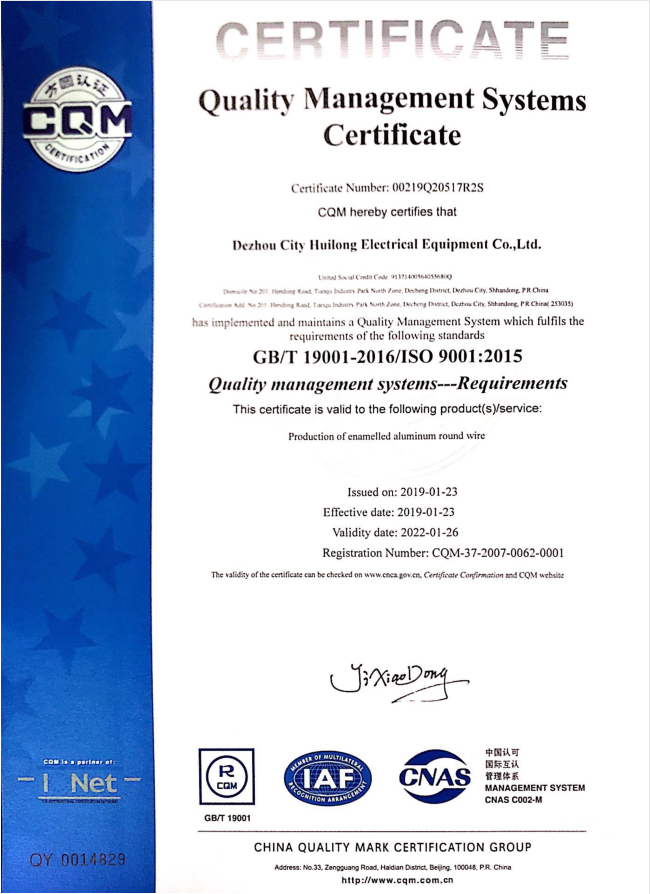 Shandong Huilong Electrical Material Co.,ltd. was founded in 1970. The factory is located in the north area of Tianqu Industrial Park, Dezhou City, Shandong Province. It has a registered capital of 3 million RMB. It covers an area of 23,310 square meters and it is a modern enterprise with a history of more than 50 years of professional enameled wire production. Welcome to visit our factory Shandong Huilong Electrical Material Co.,ltd. We renew our machinery park and our quality control laboratory with up-to-date technologies and increase our activity across international markets day by day. The company's products are widely used in Photovoltaic inverters,UPS inverters,power transformers, new energy electric vehicles, aerospace, Speaker coil,welding machines,instrumentation,household appliances,refrigeration compressors,deflection coils, high-frequency transformers,motors,electronics, power tools and other fields. The company's products are all based on IEC-60317, GB/T, JIS and NEMA production standards. With the in-depth development of global economic integration, in order to cope with the new opportunities and challenges brought by the international market, the company adheres to the business philosophy of “survive by quality and develop by credit”. The annual production capacity is up to 12,000 tons under full load. Shandong Huilong Electrical Material Co.,ltd. Our products have been exported to more than 50 countries in Europe, North America,South America,Africa, the Middle East and other regions. We offer customer specific solutions, tailor-made to suit every possible need. Whether standard or special, all our products are sustainably manufactured in a high-precision process using state-of-the-art technology. Please check out our product guide for more information!