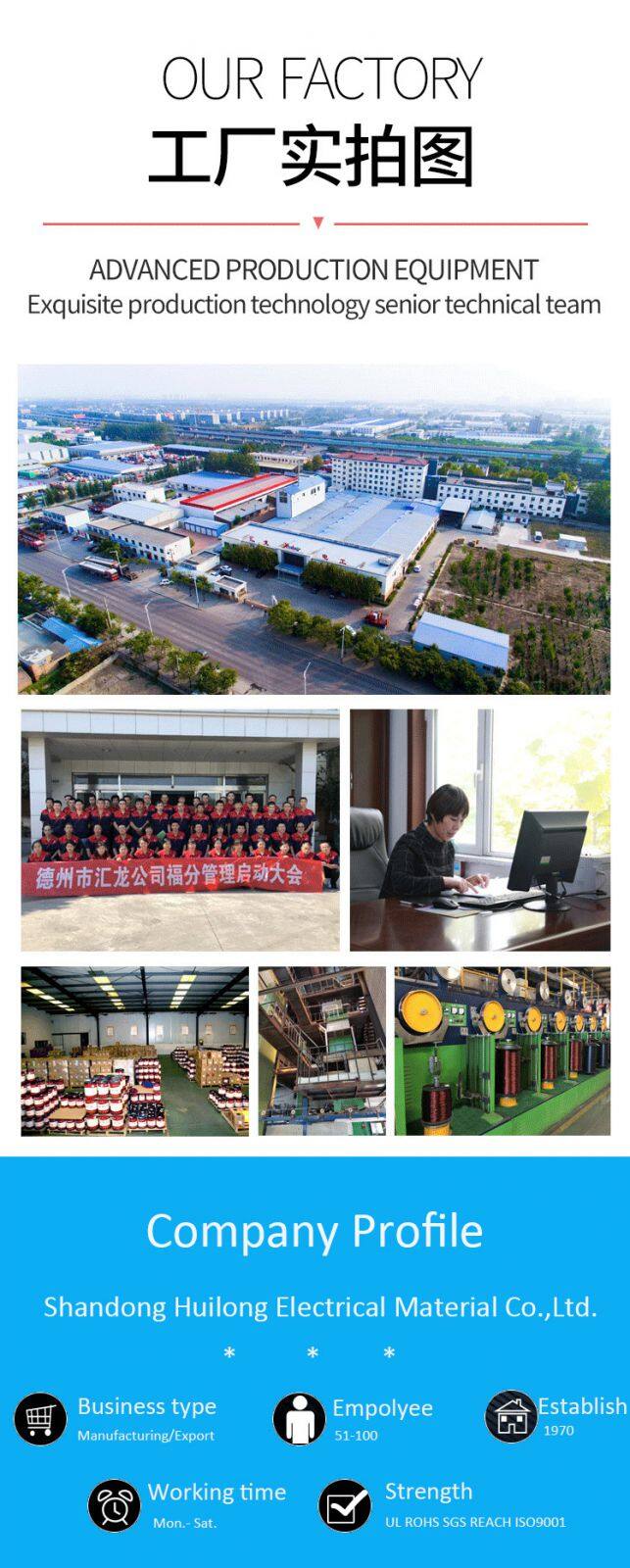 Shandong Huilong Electrical Material Co.,ltd. was founded in 1970. The factory is located in the north area of Tianqu Industrial Park, Dezhou City, Shandong Province. It has a registered capital of 3 million RMB. It covers an area of 23,310 square meters and it is a modern enterprise with a history of more than 50 years of professional enameled wire production. Welcome to visit our factory Shandong Huilong Electrical Material Co.,ltd. We renew our machinery park and our quality control laboratory with up-to-date technologies and increase our activity across international markets day by day. The company's products are widely used in Photovoltaic inverters,UPS inverters,power transformers, new energy electric vehicles, aerospace, Speaker coil,welding machines,instrumentation,household appliances,refrigeration compressors,deflection coils, high-frequency transformers,motors,electronics, power tools and other fields. The company's products are all based on IEC-60317, GB/T, JIS and NEMA production standards. With the in-depth development of global economic integration, in order to cope with the new opportunities and challenges brought by the international market, the company adheres to the business philosophy of “survive by quality and develop by credit”. The annual production capacity is up to 12,000 tons under full load. Shandong Huilong Electrical Material Co.,ltd. Our products have been exported to more than 50 countries in Europe, North America,South America,Africa, the Middle East and other regions. We offer customer specific solutions, tailor-made to suit every possible need. Whether standard or special, all our products are sustainably manufactured in a high-precision process using state-of-the-art technology. Please check out our product guide for more information!