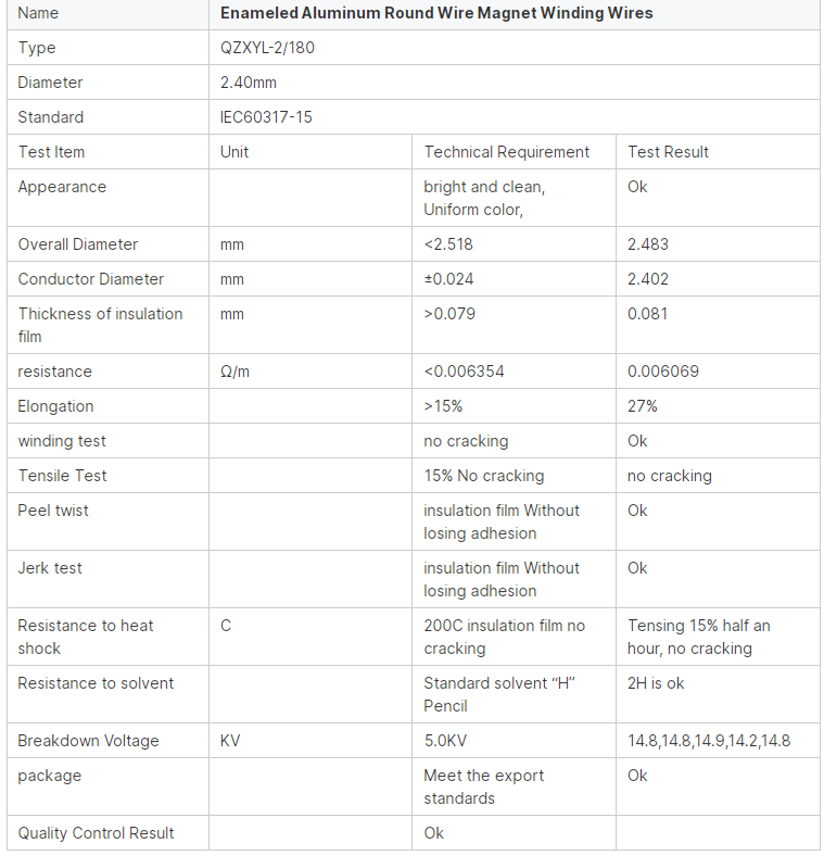 Enamelled aluminum round wire is a type of winding wire made by electric round aluminum rod which drawn by dies with special size,then over coated with enamel repetitiously.