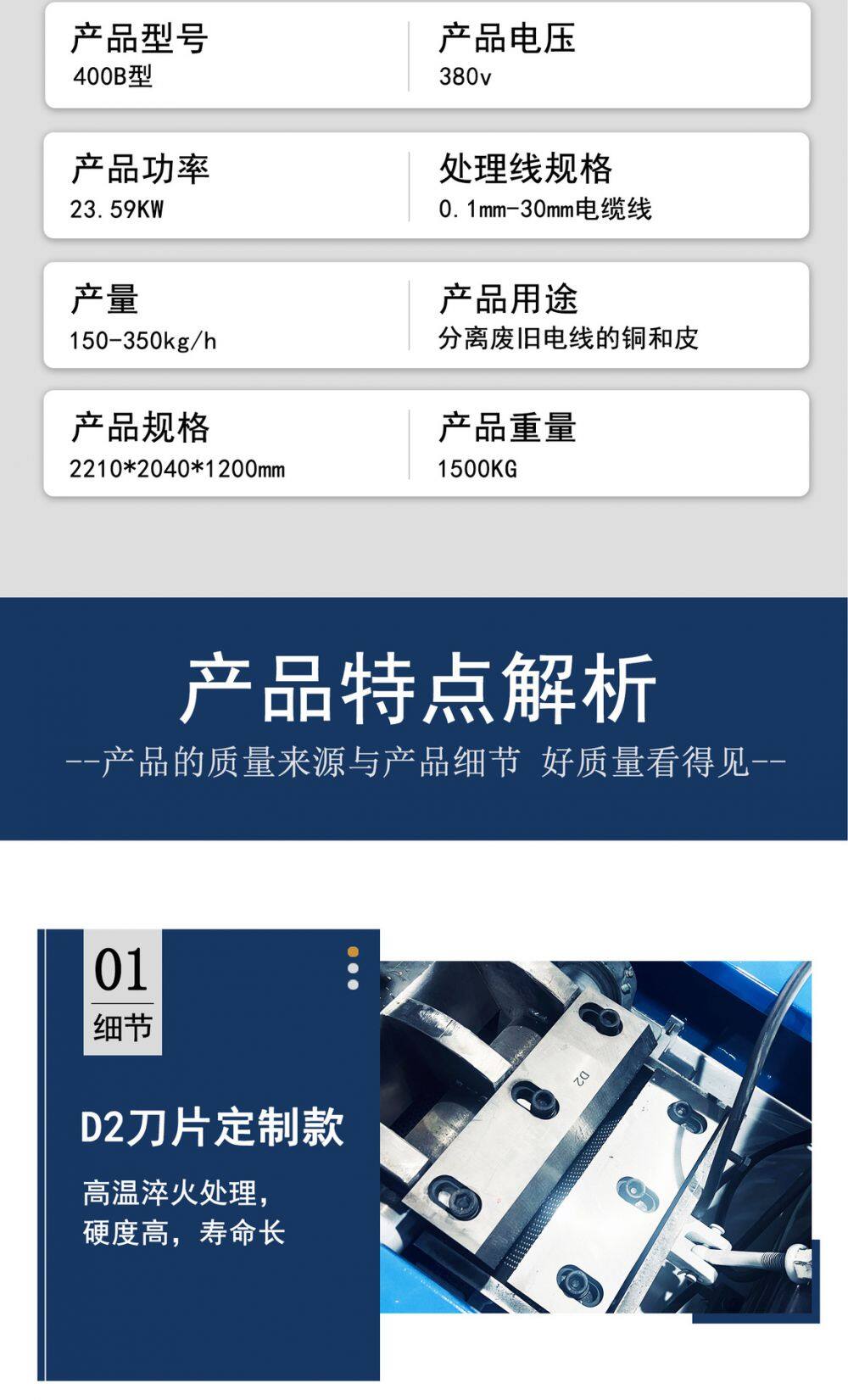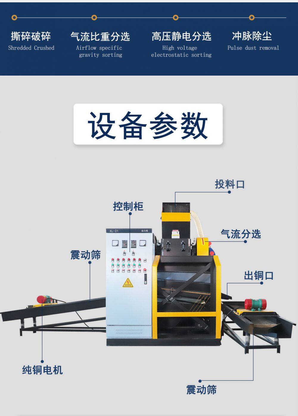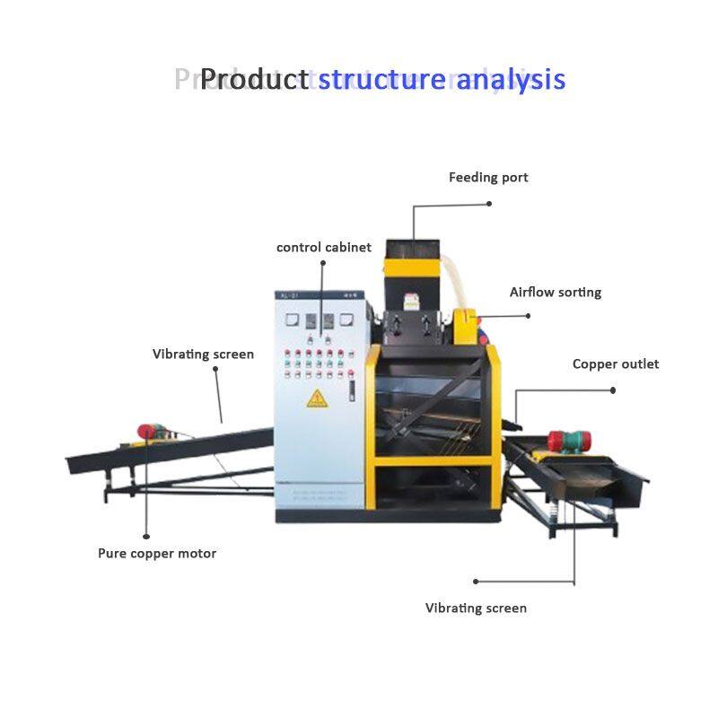 Integrated separation system: Automatically separates copper granules from insulation materials, achieving purity levels of up to 99%.
