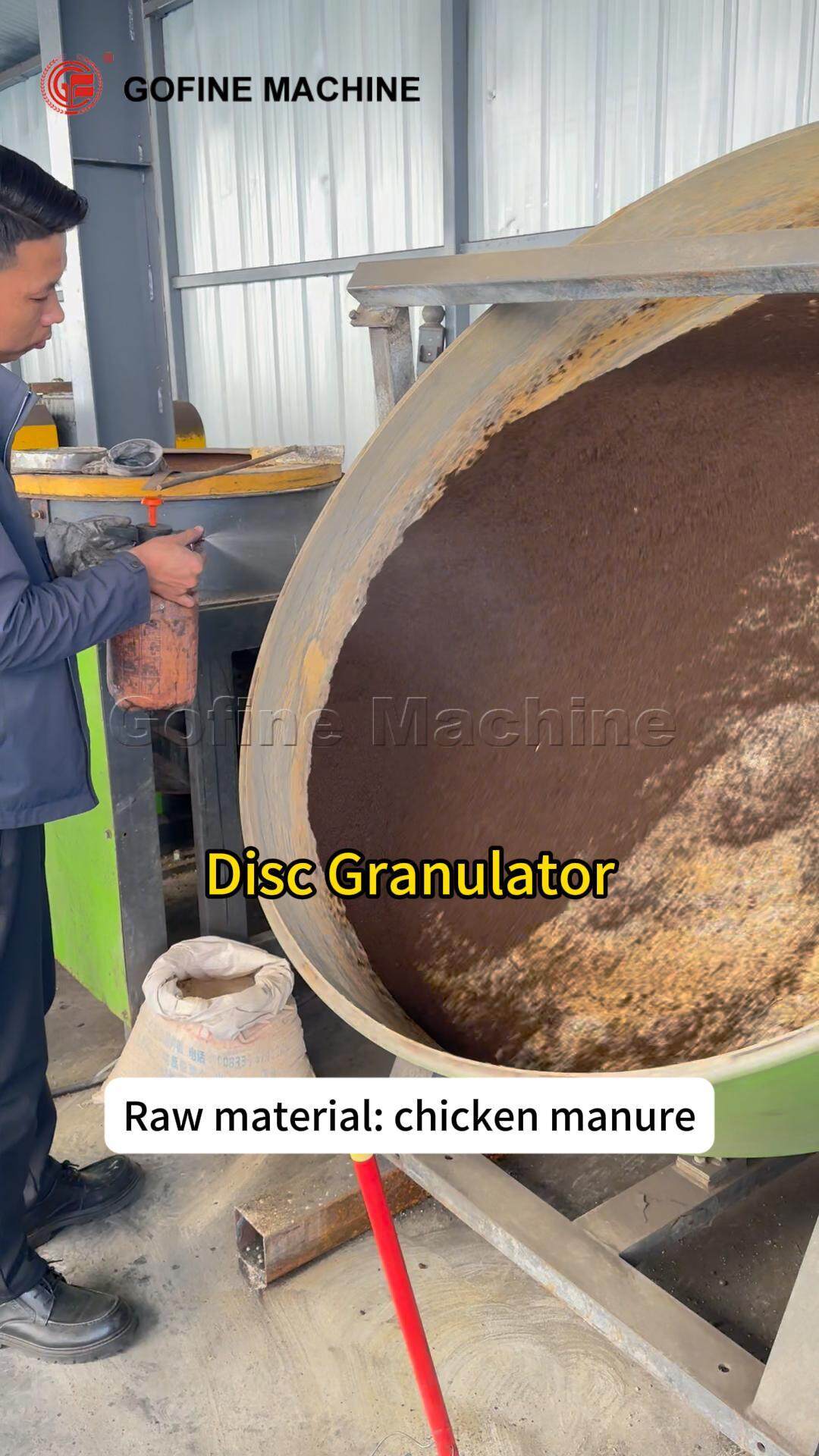Feeding: The raw powder mixture (e.g., compost, fertilizer formula, bentonite) is continuously fed onto the rotating disc.