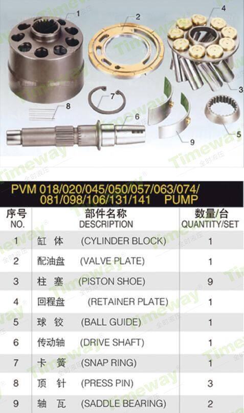 PVD-2B-32L; PVD-2B-34 walking; PVD-2B-34L (small digging main pump); PVD-2B-36L/38/40; PVD-2B-42; PVD-2B-63; PVD45; 130; PVK-2B-505 (ZAX55 main pump); YC35-6 Yuchai small digging rotary motor; YC35-6 Yuchai small digging travel motor; PCL-200-18B (Yuchai 55 revolution); Bobcat 331 excavator ( Turn); Bobcat 337 (walking motor). |