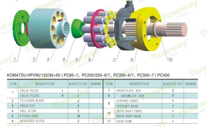 HPV35 (PC60); HPV55 (PC120); HPV90 (PC200-3); HPV90 (PC200-5); PHV95 (PC200-6, PC120-6 except the pump shaft); HPV132 (PC300-7, PC400-6); HPV160 (PC300/400-3/5); HPV135; PC30UU; PC40-8 main pump; PC50; PC60, etc. |