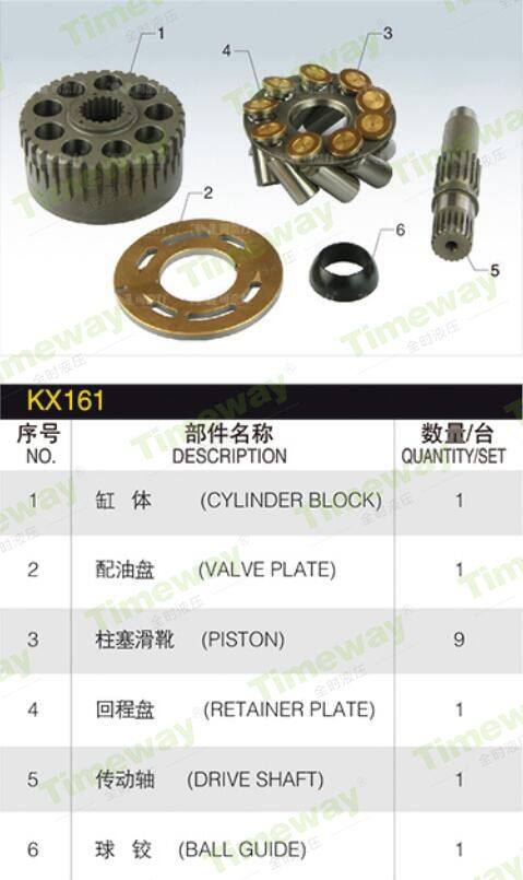 PVD-2B-32L; PVD-2B-34 walking; PVD-2B-34L (small digging main pump); PVD-2B-36L/38/40; PVD-2B-42; PVD-2B-63; PVD45; 130; PVK-2B-505 (ZAX55 main pump); YC35-6 Yuchai small digging rotary motor; YC35-6 Yuchai small digging travel motor; PCL-200-18B (Yuchai 55 revolution); Bobcat 331 excavator ( Turn); Bobcat 337 (walking motor). |