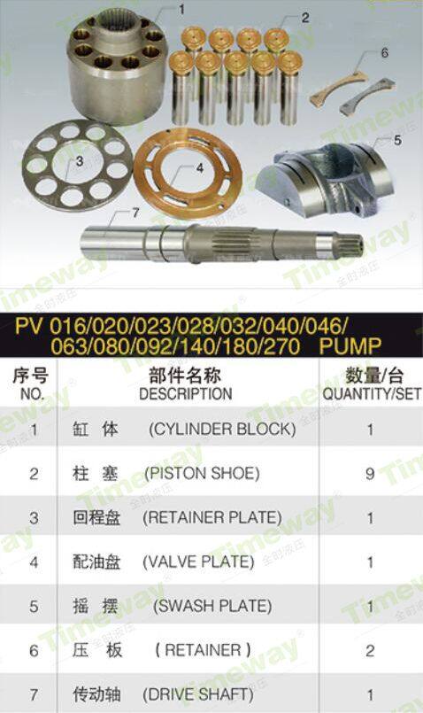PVD-2B-32L; PVD-2B-34 walking; PVD-2B-34L (small digging main pump); PVD-2B-36L/38/40; PVD-2B-42; PVD-2B-63; PVD45; 130; PVK-2B-505 (ZAX55 main pump); YC35-6 Yuchai small digging rotary motor; YC35-6 Yuchai small digging travel motor; PCL-200-18B (Yuchai 55 revolution); Bobcat 331 excavator ( Turn); Bobcat 337 (walking motor). |