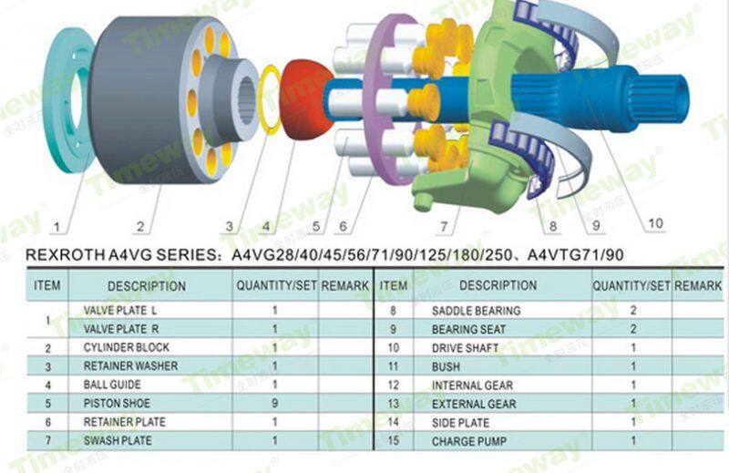 A4V40; A4V56; A4V71; A4V125; A4V250; A4VFO28; A4VSO40; A4VSO71; A4VSO125; A4VSO180; A4VSO250; A4VSO355; A4VSO500; A4VF500 / A4F500; A4VG28 (A4F028); A4VG50;; A4VG40; A4VG45 A4VG56; A4VG71; A4VTG71; A4VG90 (A4VT90HW / 32R); A4VHW90; A4VTG90 charge pump (Laid thick); A4VG125; A4VG125 Charge pump; A4VG125 charge pump (general use type); A4VG125 charge pump (A10VO28 string type); A4VG12 charge pump (large). |