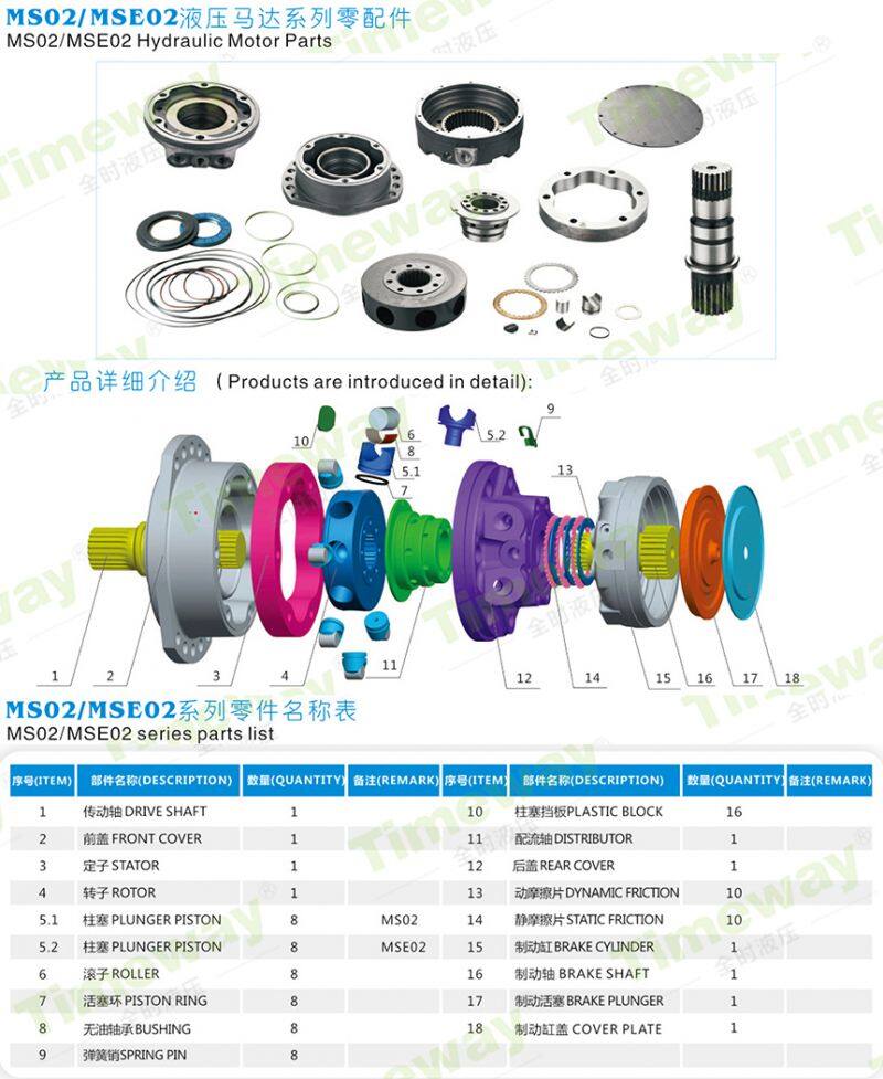 MSE02 Rotor Group Stator Seal Kits Hydraulic Motor Spare Parts for POCLAIN MSE02-2-11A-F03-3AC0-Y3FM Multipurpose Motor Repair