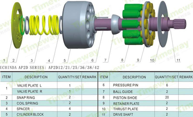 Hydraulic Pump Replacement Parts AP2D21 Pump Repair Kits for AP2D21LV UCHIDA Excavator Main Pump Spare Parts Rotary Group Kits