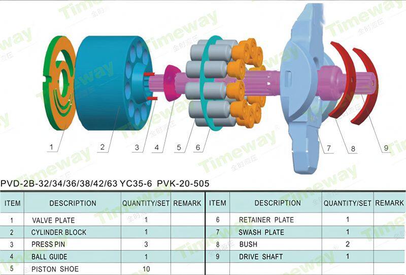 Hydraulic Pump Replacements Parts PVD-2B Piston Pump Repair Kits for Nachi PVD-2B-28 Piston Pump Spare Parts Rotary Group Kits
