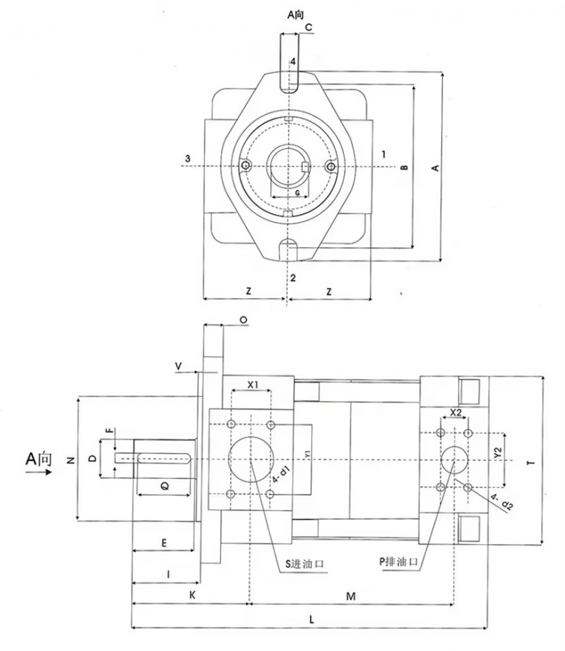 NT2-G10/12/16F Internal Gear Pumps for Bending Machine Injection Molding Machine NT2-C10/12/16F NT2-D10/12/16F Inlet/outer 180