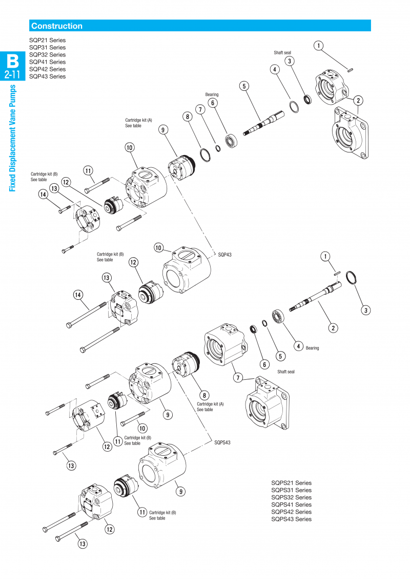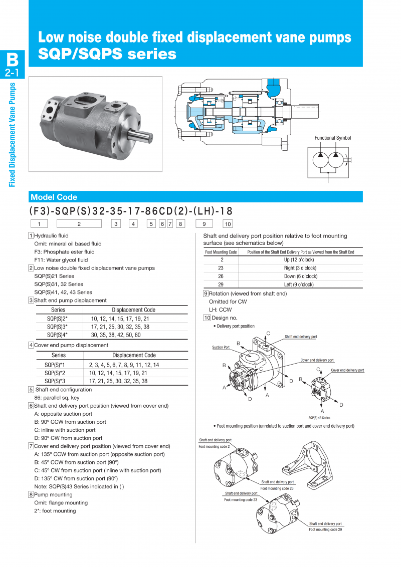 SQP Series Double Pump SQP32-21/25/30/32/35/38/45--12-86BB-R-18 Hydraulic Low Noise Double Fixed Displacement Vane Pumps