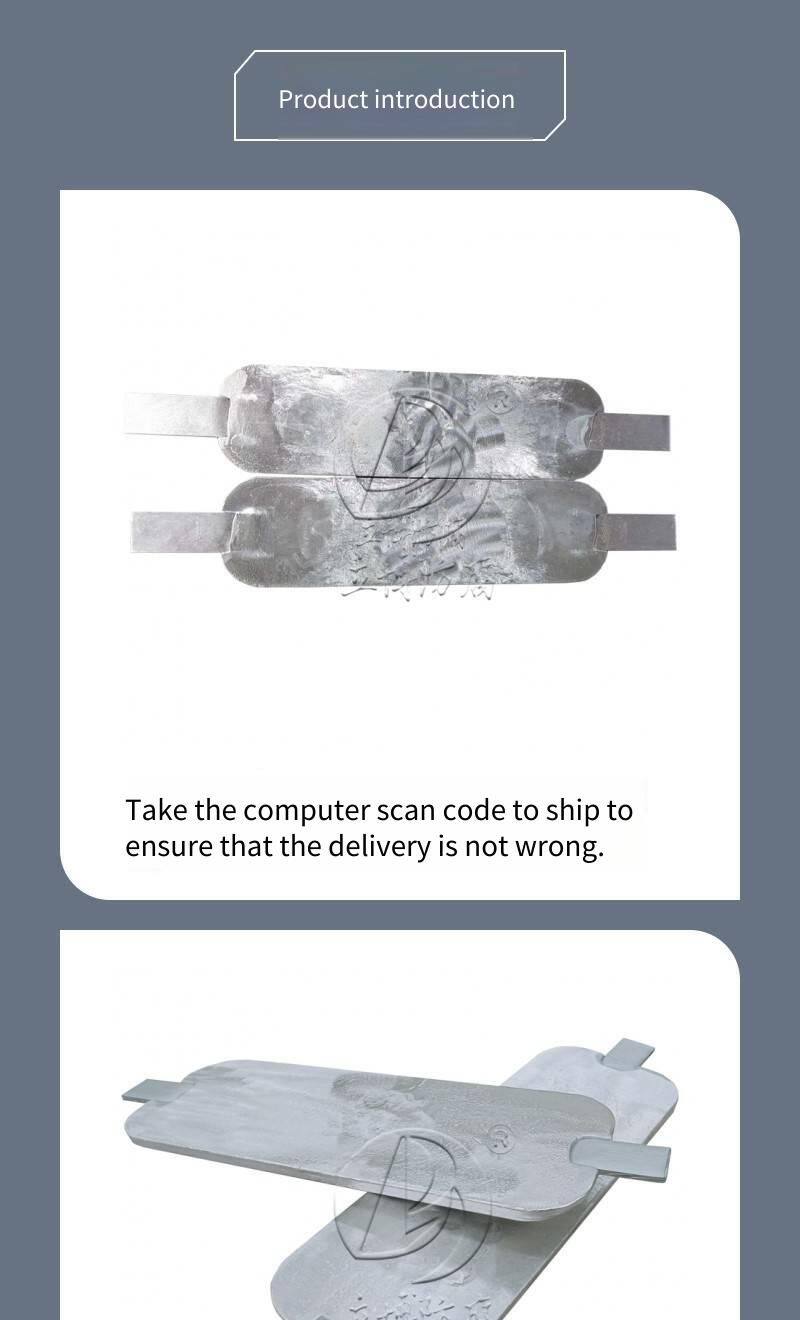 The aluminum anodes produced by Jiaozuo Libo Light Alloy Co., Ltd. can prevent the corrosion of steel structures in seawater. They are widely used for anti-corrosion of hulls, ballast tanks, seawater pipelines, port and wharf facilities, ocean engineering, drilling platforms, condensers, etc. Since the performance of aluminum anodes is affected by the alloy composition, we offer different combinations of aluminum alloys to meet customers' requirements. The standard implemented by our company is GB/T4948 - 2002. Different sizes can be customized according to customers' requirements!