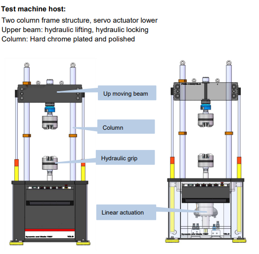* The actuator has built-in displacement sensor, external electro-hydraulic servo valve and force sensor, with two closed-loop control loops of force and displacement;