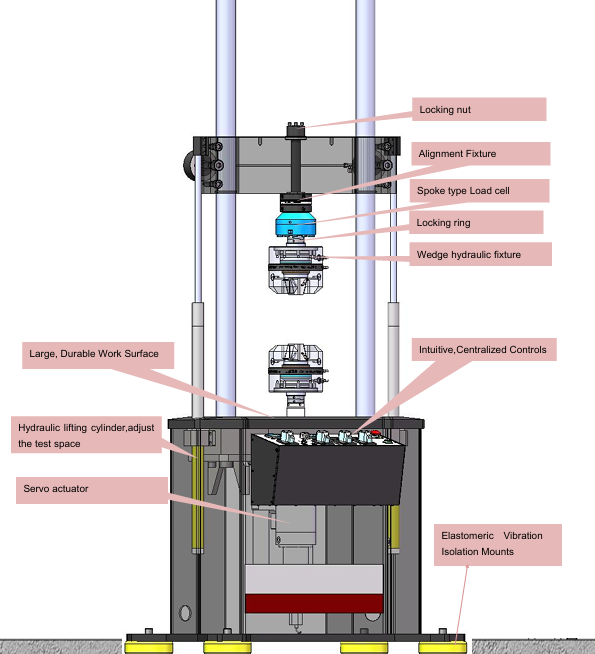 This Test machine is flexible, moving beam down, locking the sample holder by button operations, the use of advanced hydraulic servo drive technology loaded, high precision and high resolution dynamic load sensor magnetostrictive displacement sensor specimens force values and displacement.