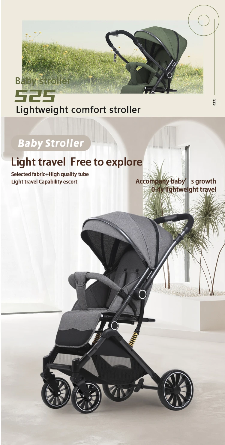 2025 Linen Easy Carry Foldable Baby Stroller Push Two Way Baby Pram Stainless Steel Frame 0-3 Years Old
