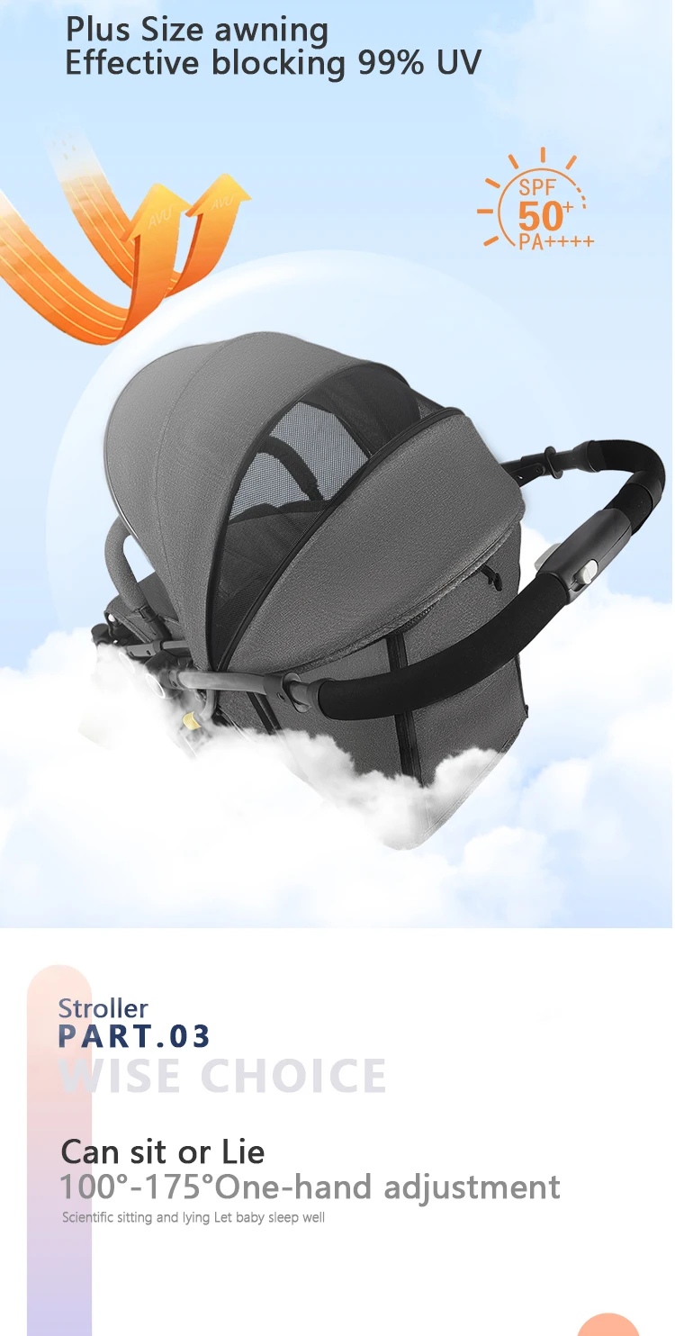 2.The three section foldable canopy protects baby from the sun.