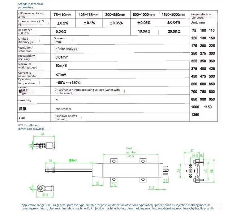 Zalip Ktc-750mm Pull Rod Linear Displacement Sensor, Electronic Ruler and Resistance Ruler for Injection Molding Machine Pull RodUS$ 298MOQ: 1 Piece