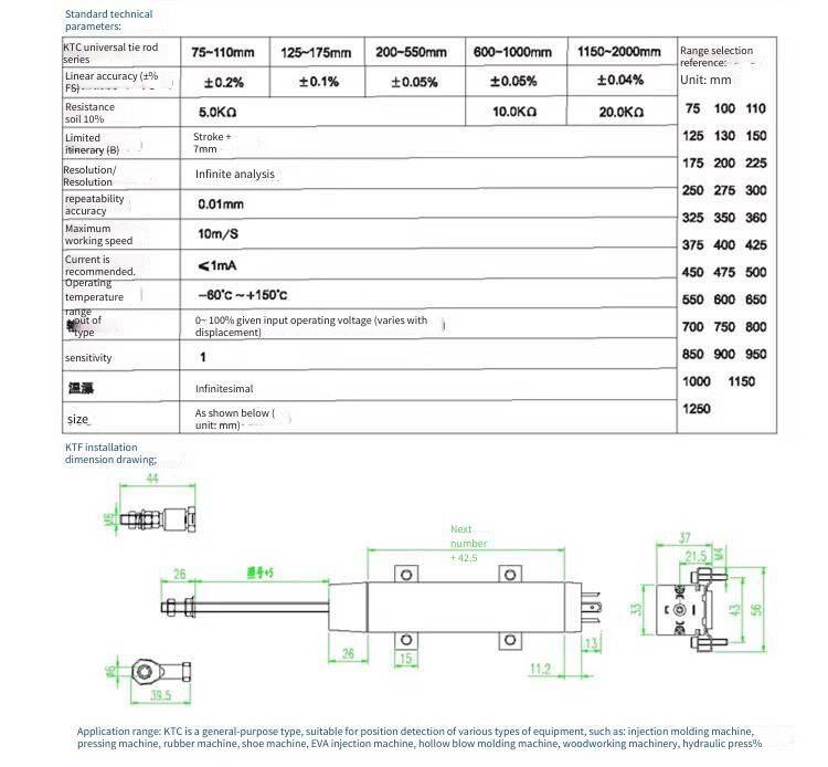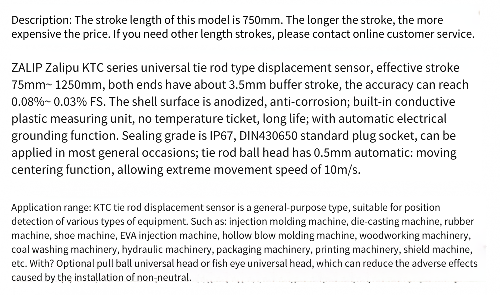 Zalip Ktc-750mm Pull Rod Linear Displacement Sensor, Electronic Ruler and Resistance Ruler for Injection Molding Machine Pull Rod