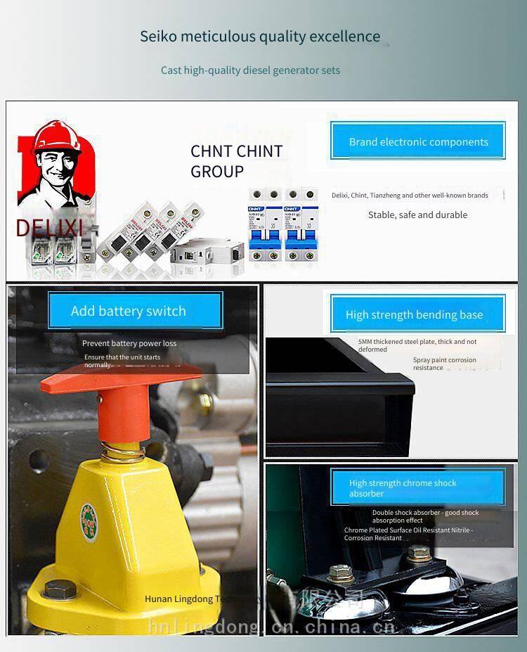 The "Shanghai Diesel" brand diesel generating sets can be designed with functions such as automatic parallel operation, self - starting and self - switching according to user needs, and can also be designed as bottom - tank units, dust - proof and silent units, mobile power stations, etc. Shanghai Diesel generating sets are reliable in operation, beautiful in appearance, compact in structure, and good in economic performance. Moreover, the generator voltage regulator features high voltage regulation accuracy, good dynamic performance, long service life, etc. They are widely used in many fields such as communication, mining, railways, hospitals, road construction, industrial and agricultural production, as well as workboats, fishing boats, cargo ships, etc. They are also suitable for generator leasing or rental, and are a popular choice for many users.